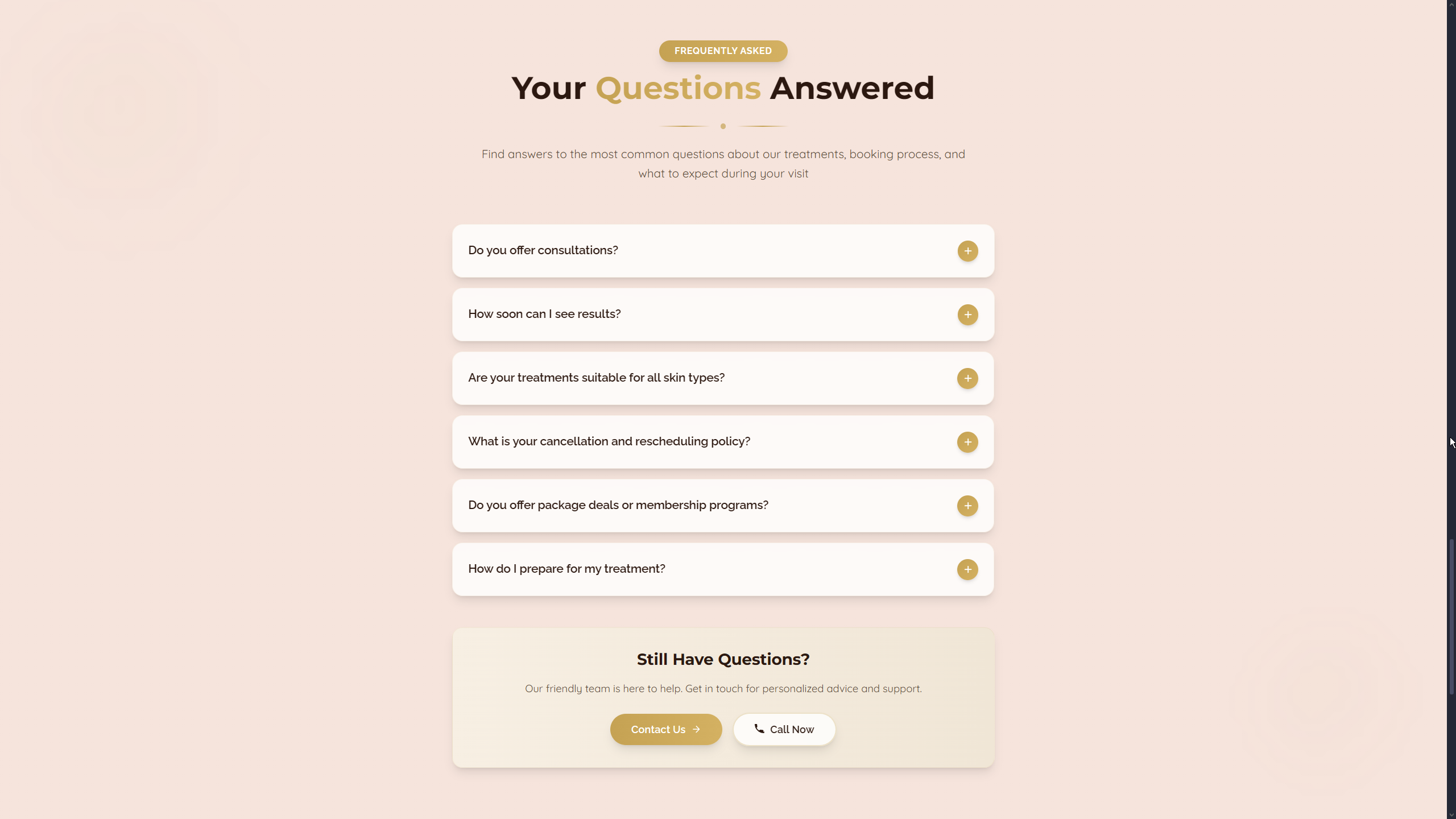 The platform includes a wide range of features designed to showcase skincare services and provide clients with an elegant browsing and booking experience.