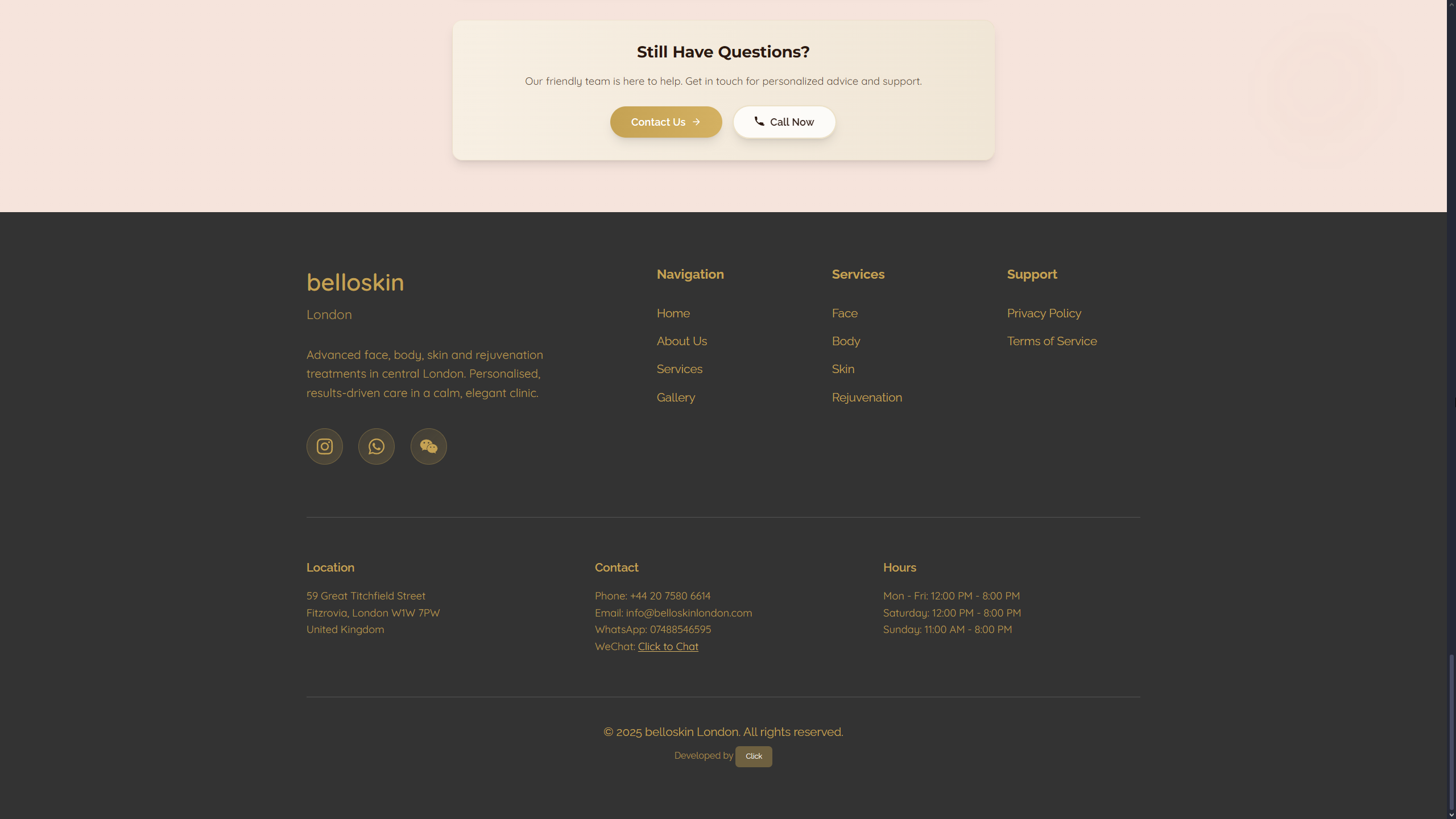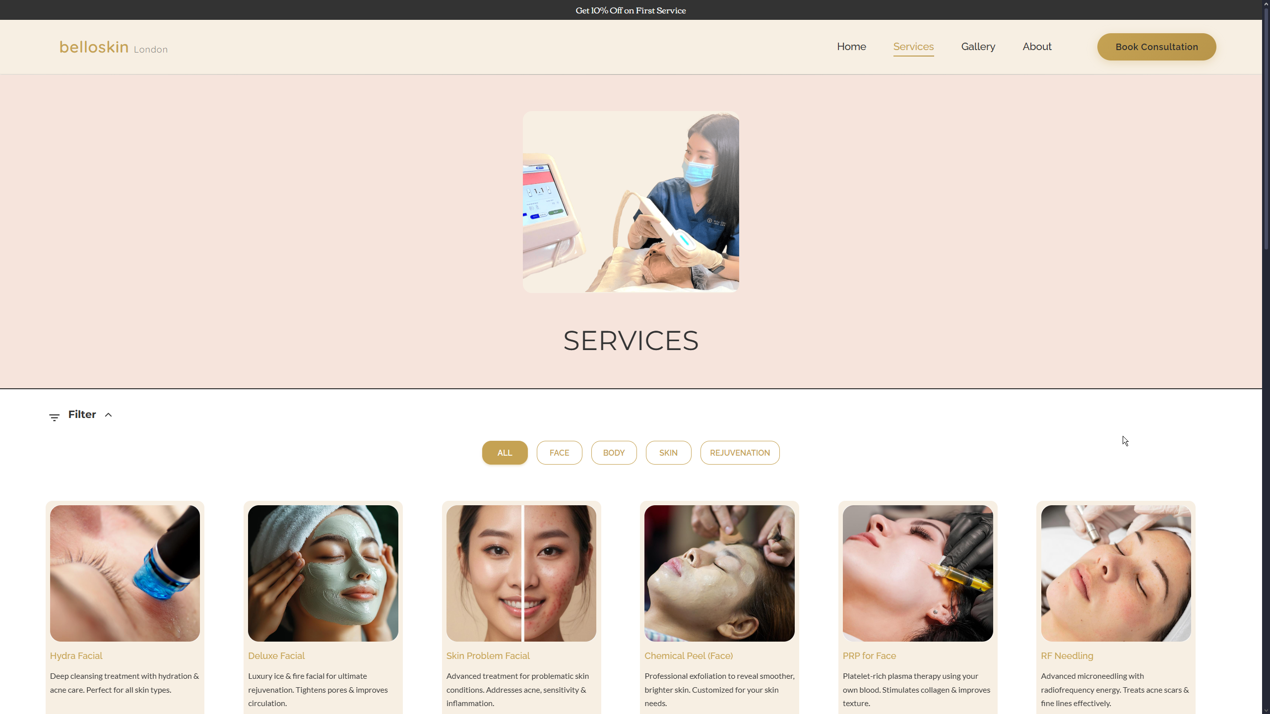 Belloskin London represents an elegant skincare salon website solution with comprehensive service showcase, multiple gallery sections, and integrated booking functionality. The platform successfully combines modern web technologies with beautiful design aesthetics to create an exceptional salon experience for clients.