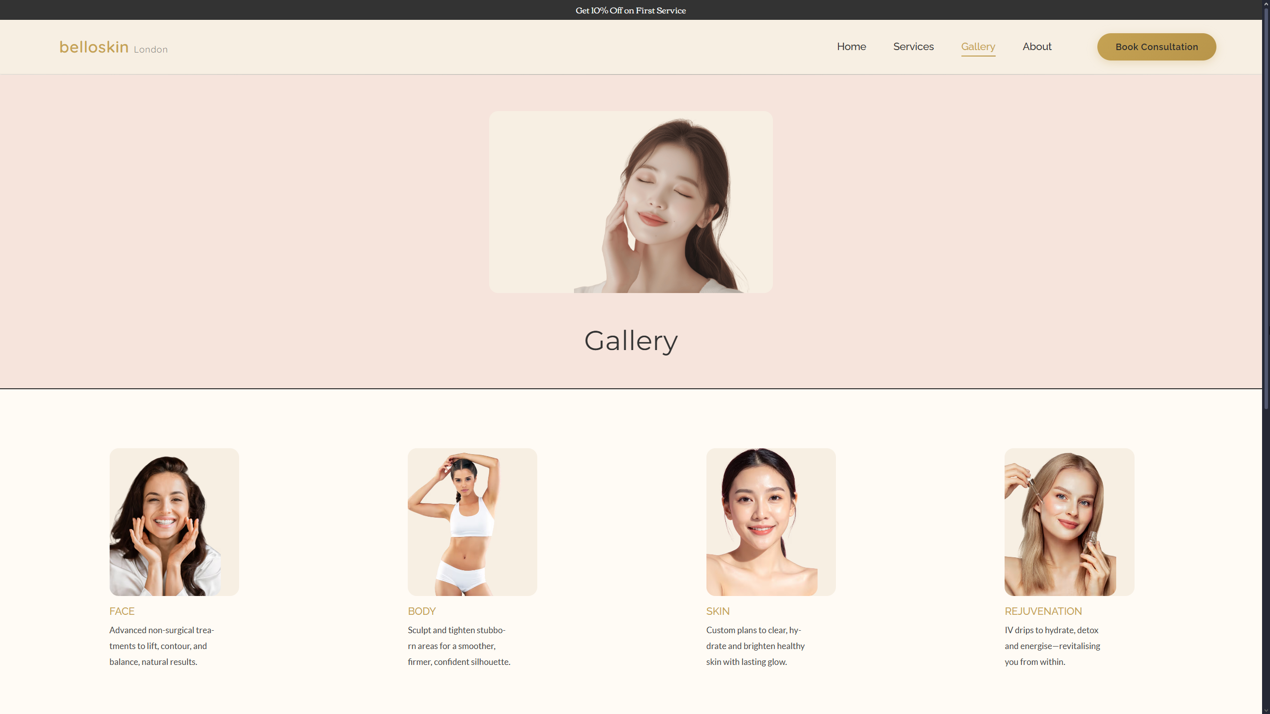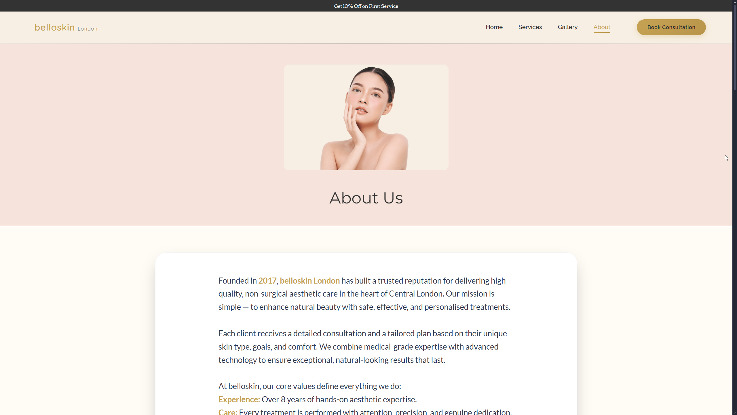 Explore the visual journey of Belloskin London through detailed screenshots showcasing key features and pages.