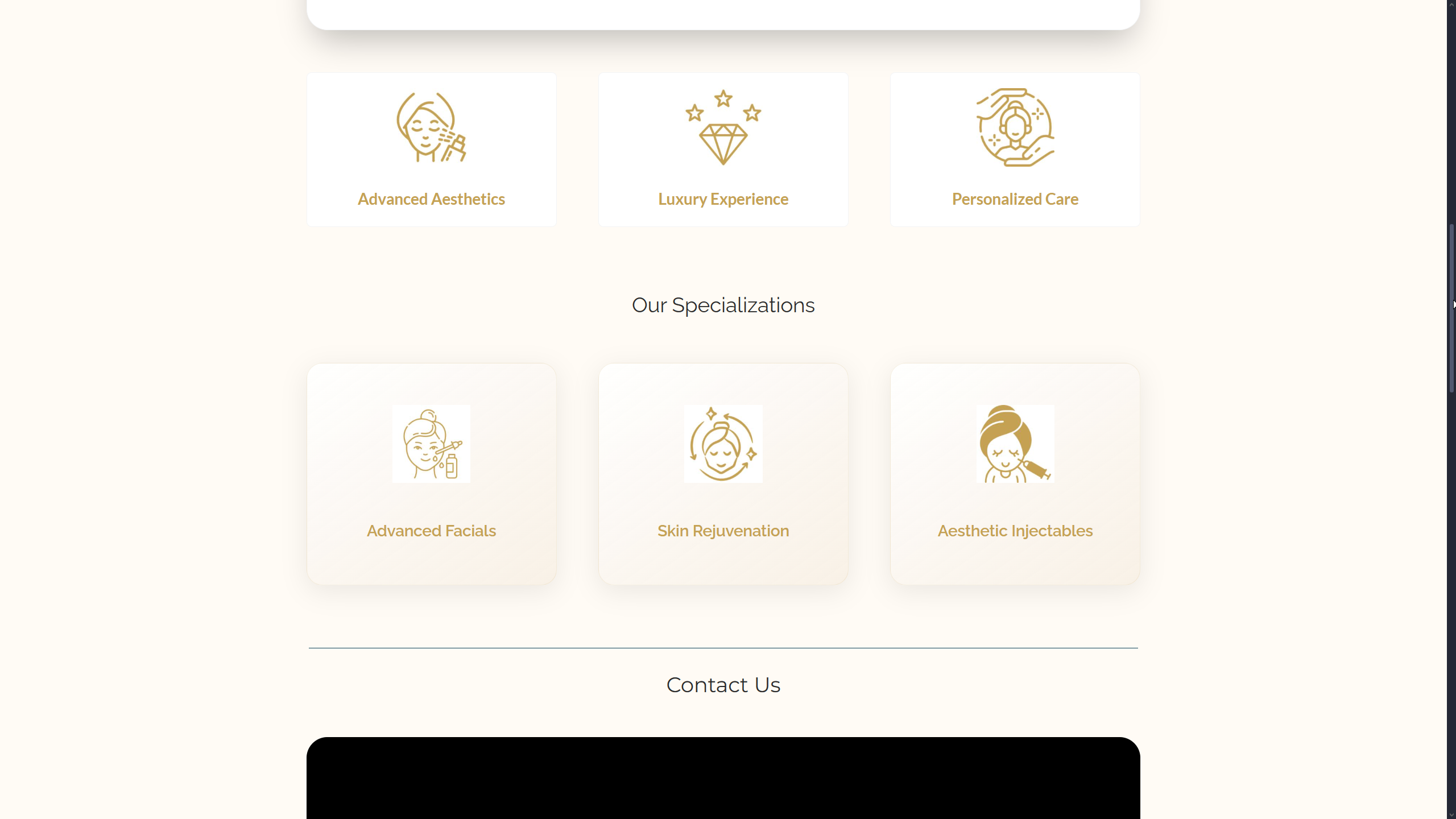The platform includes a wide range of features designed to showcase skincare services and provide clients with an elegant browsing and booking experience.