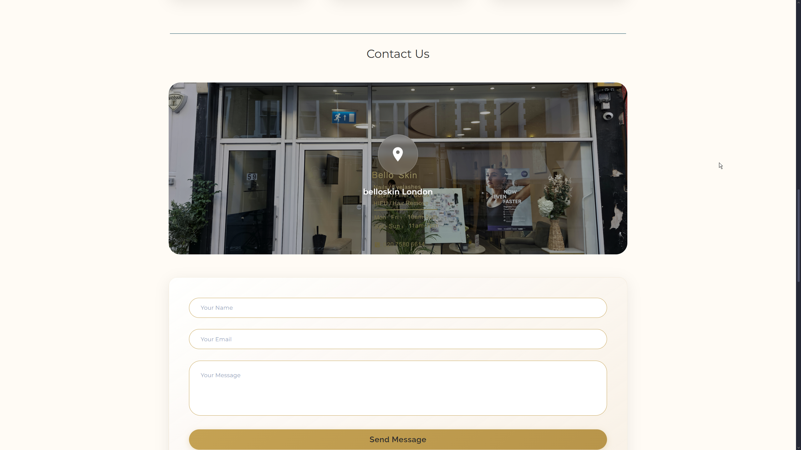 Belloskin London represents an elegant skincare salon website solution with comprehensive service showcase, multiple gallery sections, and integrated booking functionality. The platform successfully combines modern web technologies with beautiful design aesthetics to create an exceptional salon experience for clients.