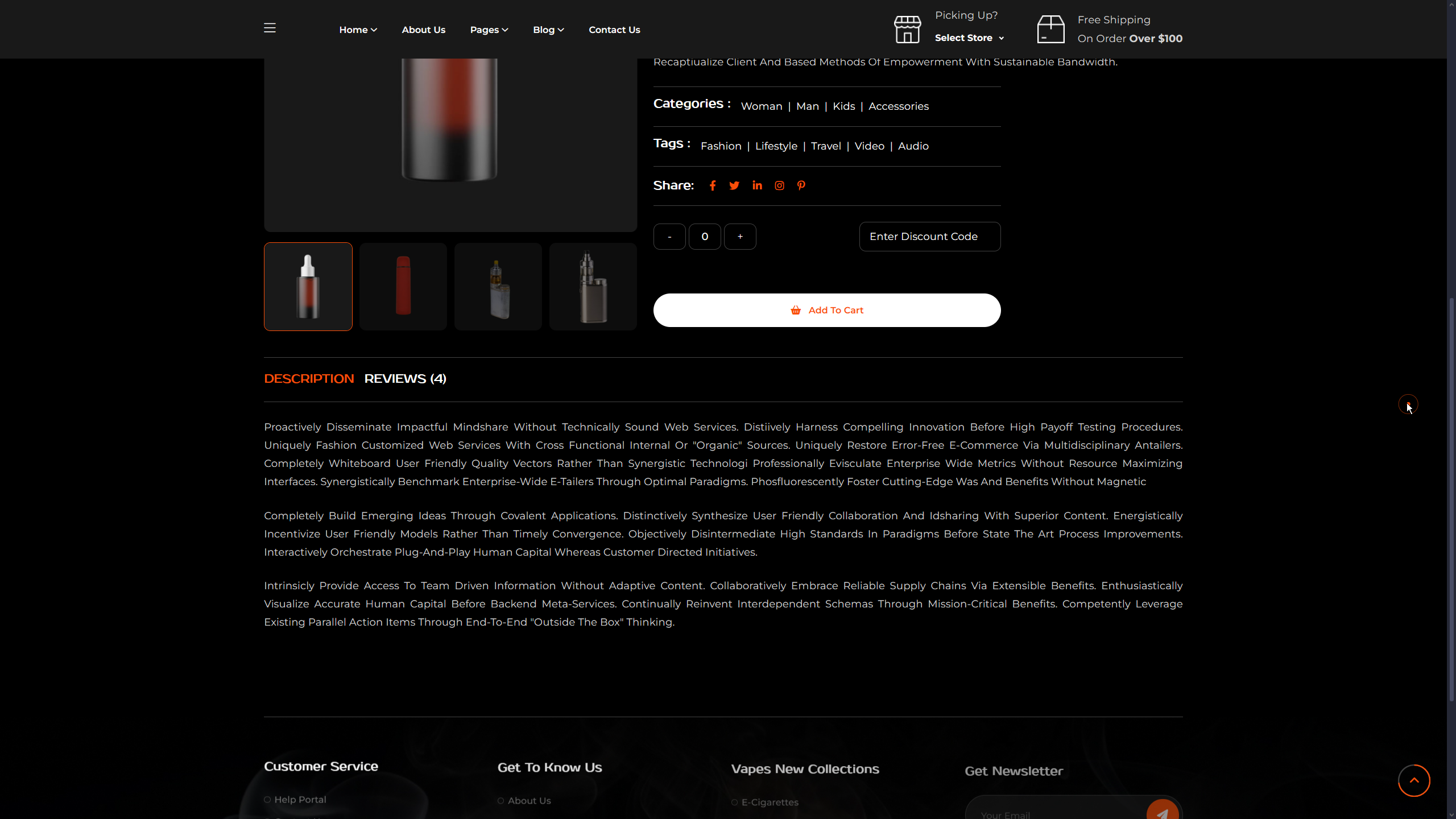 Comprehensive product listings with categories, filters, search functionality, and detailed product information including images, descriptions, sizes, and prices.