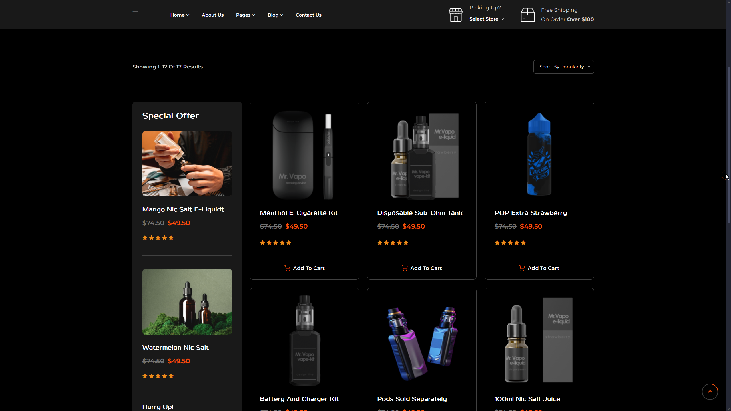Advanced shopping cart with add, remove, update quantity functionality, price calculations, and persistent cart storage across sessions.